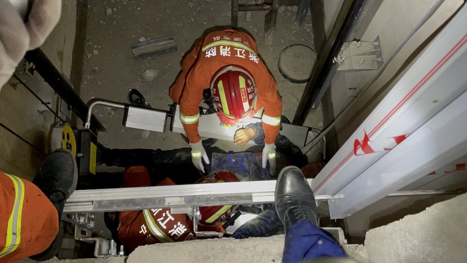 宁波宁海一男子不慎跌落电梯井消防员紧急救助 腾讯新闻